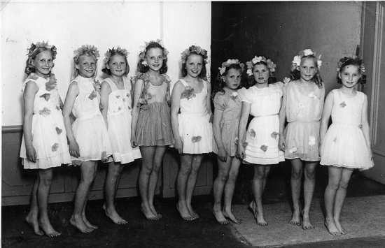 Kun Munkkiniemen Yhteiskoulu täytti 10 vuotta - syksyllä 1948 - niin II luokan pikkukeijut ( kesäperhoset? ) saivat kunnian esiintyä Ilmavoimien esikunnan juhlasalissa järjestetyissä juhlissa näin suloisissa asuissa tanssahdellen.