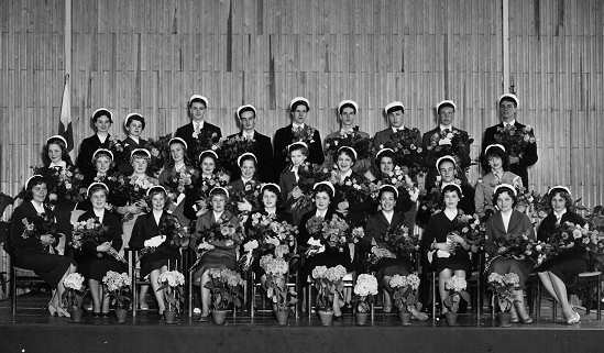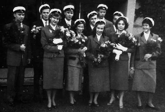 Tyttöset vasemmalta oikealle: Ritva Strand, Outi Haapasalo, Eila Ollikainen, Mirja Seitava, Tuula Sovio, Mirja Railo, Karli Inkovaara, Eeva Puranen ja Leena-Maija Sorvari.