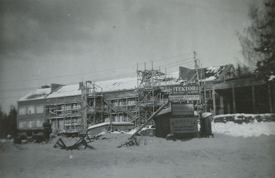 Tämä kuva on otettu 10.3.1951 kun koulu oli kuoriutunut rakennusaikaisista pressuistaan talven selän taituttua. Tähän koulurakennukseen me siirryimme syksyllä 1951 ja se oli suurta juhlaa. Meidän koulumme oli uraauurtava koulu Suomessa aineluokkajärjestelmältään. Tietysti me olimme aivan ”sukset sekaisin” ensin aluksi kun piti etsiä se seuraava luokka. Ja tungos ala-aulan henkilökohtaisilla kaapeilla oli melkoinen kun käytiin hakemassa seuraavan tunnin kirjoja ennen seuraavaan luokkaan ryntäämistä. Totta kai meillä oli välituntejakin silloin tällöin ja opettajat valvoivat valppaasti, että sinne pihalle todella mentiin - eikä jääty sisälle lymyilemään.
