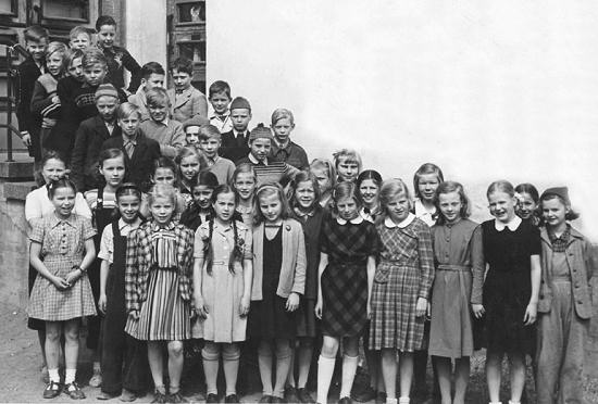 Todettakoon - lukijoiden muistin virkistämiseksi - että alla olevassa kuvassa esiintyvät reippaat koululaiset ovat ikäluokkaa 1937-38. Me synnyimme rauhanaikaiseen, hyvinvoivaan Suomeen. Mutta pian syttyi talvisota, josta emme kyllä onneksi mitään muista. Sen sijaan monet meistä muistavat varmasti jatkosodan vuosista ainakin jotain, sillä jouduimme aina silloin tällöin lähtemään kotoa turvallisempiin maisemiin, maaseudulle, koska itäinen naapurimme pommitti pääkaupunkiseutua ajoittain rajustikin.