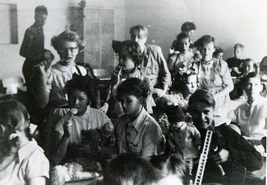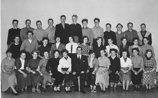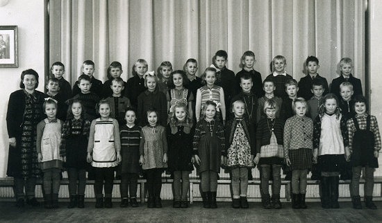 Oppilaat eturivissä vasemmalta Pirjo Setkänen, Leena Manns, Terttu Lampinen, Annikki Häkkinen, Anja Hurmerinta, Ritva Karimo, Eila Valjakka, Kirsti Elfving, xx?, Pirkko Nikulainen, xx?, Mirja Loikkanen ja Tuulikki Siitonen.