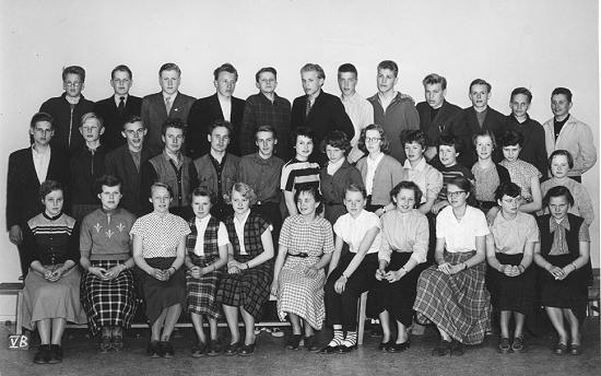 Sitten poikia: edessä vasemmalta Lalli Kalo, Rauno Anttila, Jouko Liiri ja Juhani Lindgren; taempana Kalevi Seeström, Jaakko Korhonen, Seppo Saarinen, Ilkka Arkiomaa ja Juhani Hyvärinen; Pekka Kaartinen, Jorma Hintikka, Eero Heliö ja Georg Fehrmann; Heikki Kaitera, Matti Saukkonen, Pertti Helo ja Jorma (Karl-Heinz) Lark. Kuvasta puuttuu Eva Stenholm. Luokalla oli siis 40 oppilasta