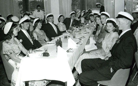 Illalla juhlittiin tietysti Fiskiksellä. Pöydässä vasemmalta Tuulikki Tuominen, Pertti Seeve, Pirkko Koutsa, Jaakko ”Mooge” Seppälä, Pirkko Nora, Risto Ruukki, Tuulikki Siitonen, Heikki ”Hese” Mäntylä, Eeva-Liisa ”Evsku” Sorvari, Matti Lampinen, Irmeli ”Piila” Gyldén ja Juhani ”Hespa” Hyvärinen.