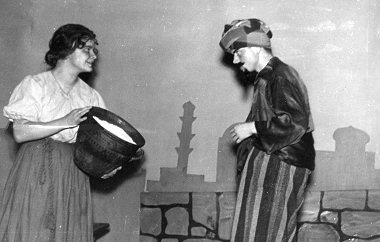 Kuva näytelmästä ”Hassan Köydenpunoja”, jossa Ulla Emaus esittää