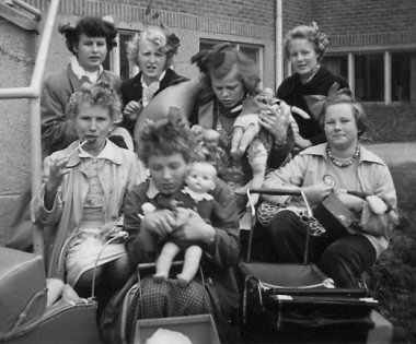ja Pirkko Nora, edessä vasemmalta Marja-Liisa Rynö nukenvaunuineen ja