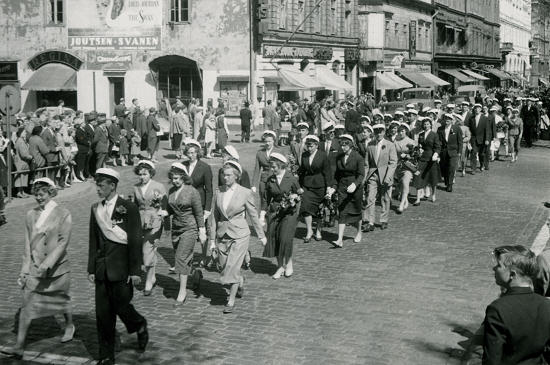 Katsokaapa minkä näköinen oli nykyinen Akateemisen kirjakaupan kulma keväällä 1956! Kuvan vasemman reunan ulkopuolella on silloinen ”Wulffin kulma”, joka nykyään on osa Stockmannia. Päivä oli mahtava, sää lämmin ja aurinkoinen, askel kevyt, olo ylpeä ja sydän onnea täynnä niin kuin varmaan tämänkin päivän nuorilla ylioppilailla.