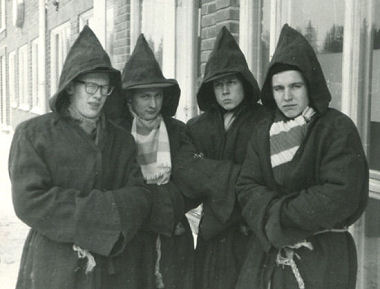 Kuvan munkeista kolme oli jo opiskellut ulkomailla: Matti ja Risto vuoden USA:ssa AFS-koululaisvaihdon kautta ja Pertti 2,5 vuotta Englannissa. Tätä voinee kai jo sanoa varhaisglobalisoitumiseksi.