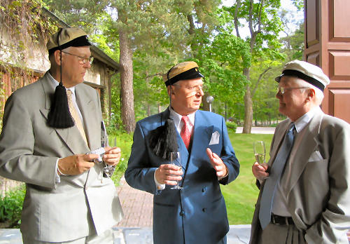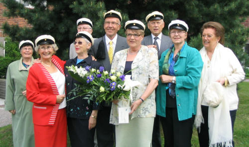 Riemujuhlapäivämme 3.6.2005Me alla olevissa kuvissa näkyvät riemuylioppilaat vietimme juhlaamme koululla ja päivän kuluessa rehtori Aki Holopainen ja vararehtori Päivi Wickström esittelivät meille koulua ja sen nykyistä toimintaa. Mukana oli 39 A - ja B- luokkien vanhaa (?) oppilasta - 12 luokkatoveriamme on jo siirtynyt ajasta ikuisuuteen. Intensiivisen ja vauhdikkaan koululla vietetyn yhteisen muistelutuokion ( ainakin 2 tuntia! ) jälkeen käytiin sankarihaudoilla ja sitten mentiin Fiskikselle nauttimaan illallinen ja siellä vasta oikein muisteltiinkin! Hauskaa oli ja päätimme, ettemme odota enää seuraavaa 50 vuotta, vaan kokoonnumme kolmen (3) vuoden kuluttua uudelleen! | ||